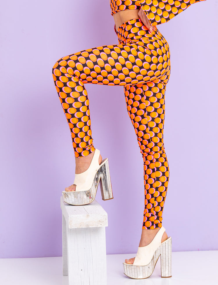 The Double Vision High Waist Leggings are a festival wardrobe essential. Our UV-reactive polka dot print sits on a flattering high waist cut that holds and sculpts, in a stretchy fabric that moves with you all day. Pair with the matching crop top or bodysuit for the full Double Vision look.