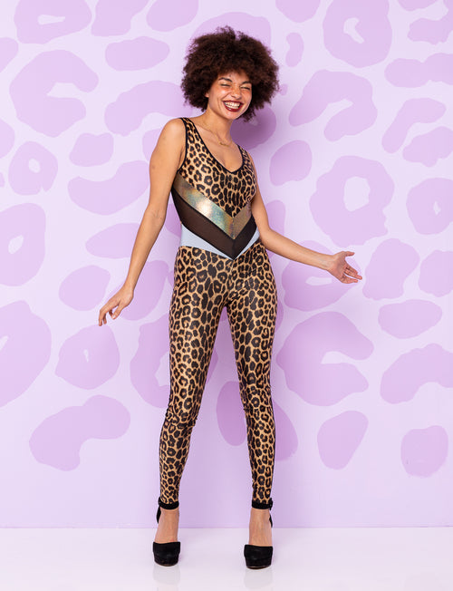 We’ve paired our classic leopard print with a gold holographic panel and metallic gold trims & stars. With long black slinky fringe, this is one classic babe.